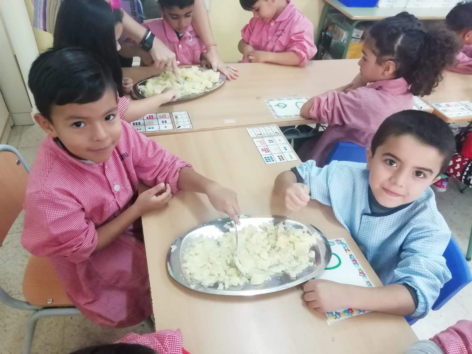 LES NENES I NENS DE P5A I P5B ENS VAM AJUNTAR A UNA AULA PER FER PANELLETS!!!